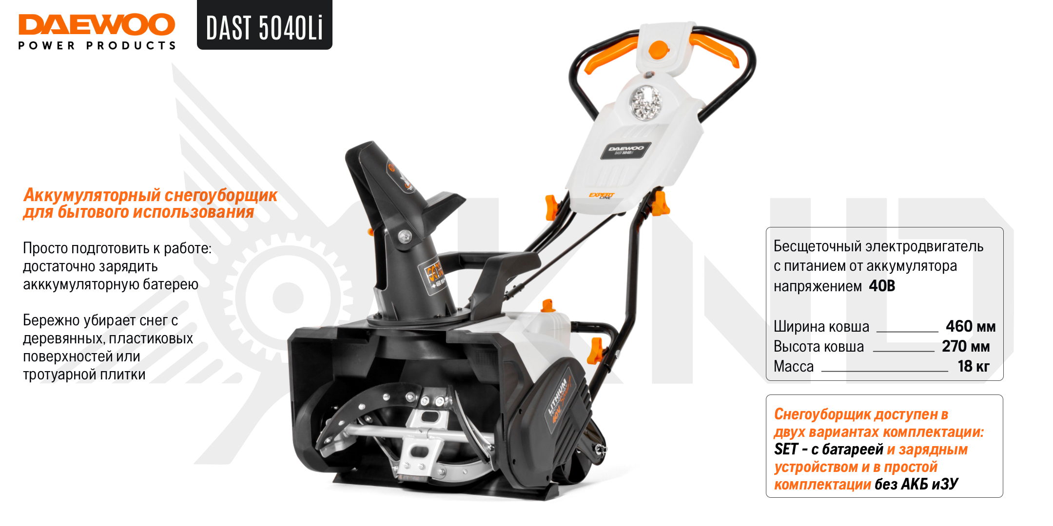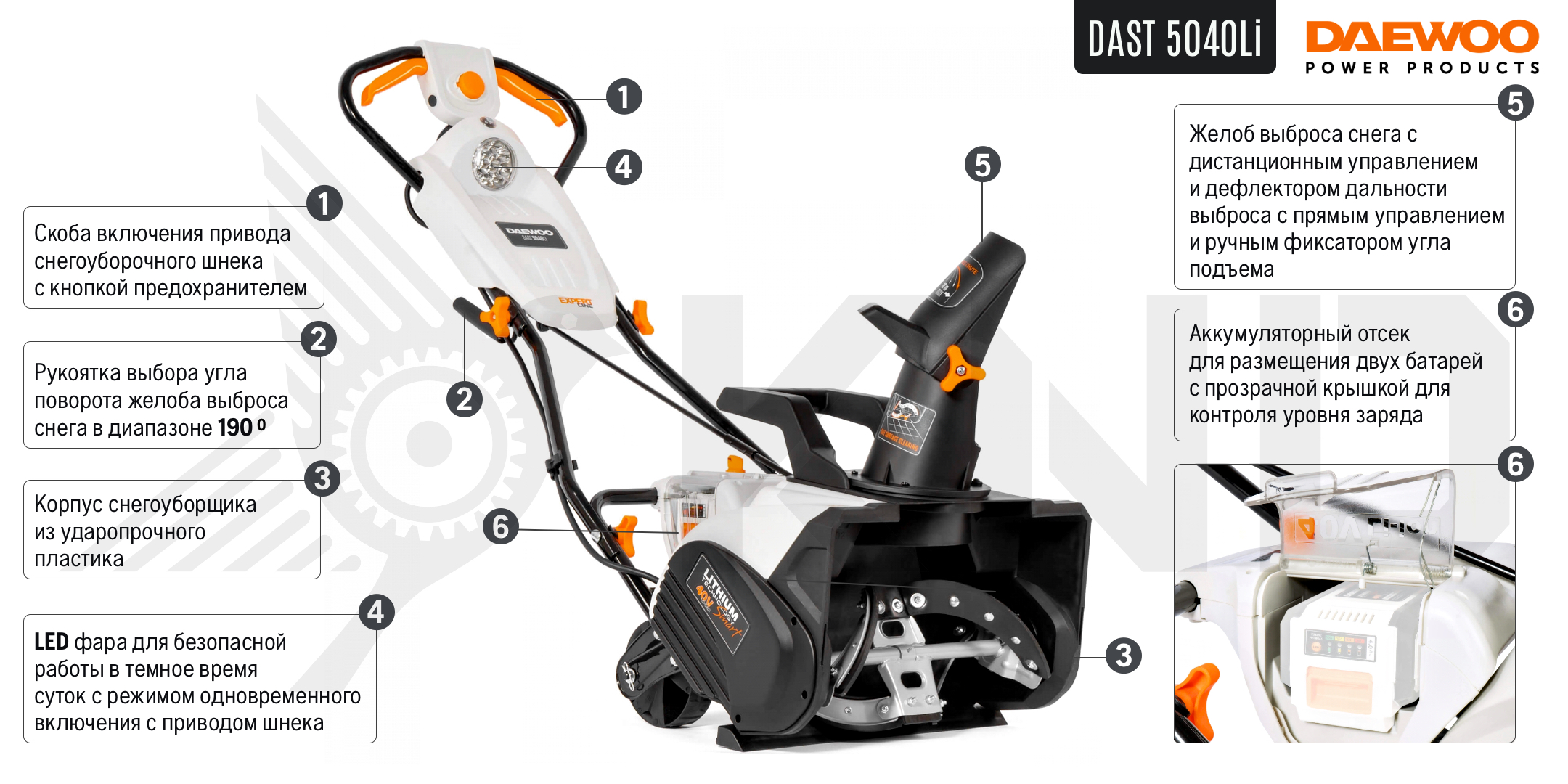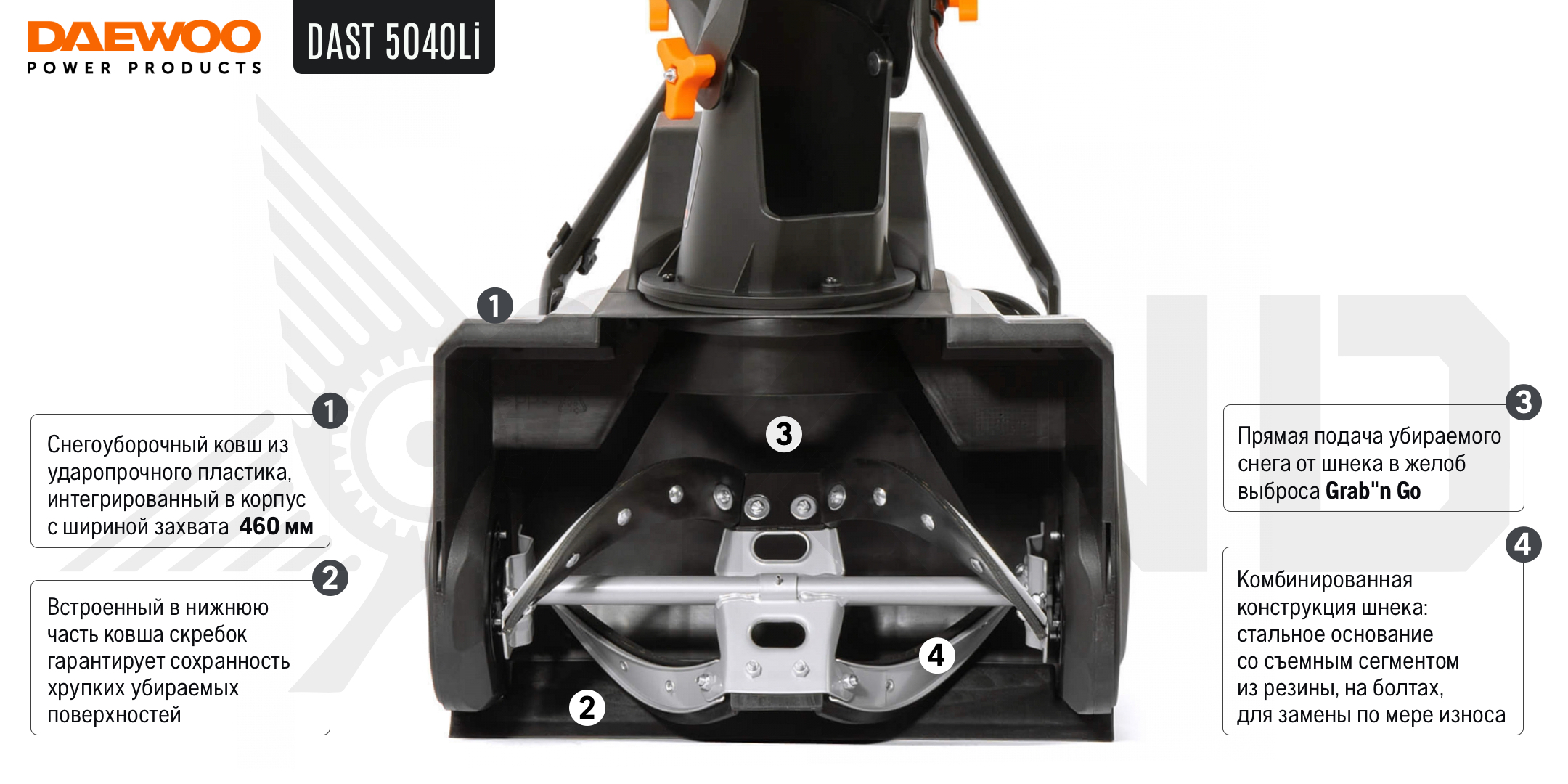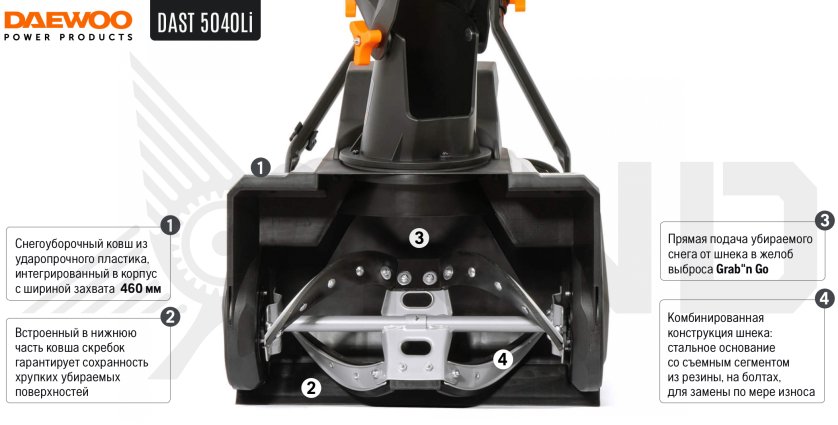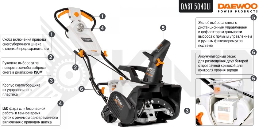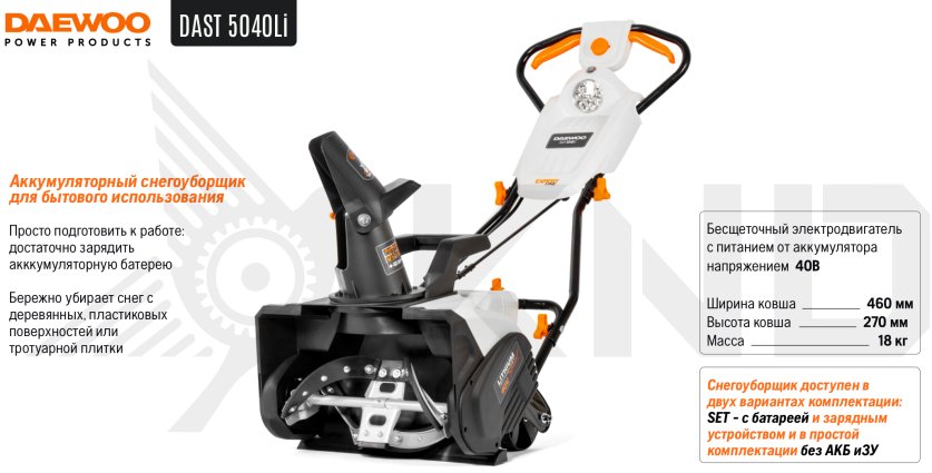 Аккумуляторный снегоуборщик DAEWOO DAST 5040Li с АКБ 4 Ач и ЗУ