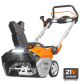 Яркие светодиодные фары качественно освещают рабочую зону перед снегоуборщиком, гарантируя комфорт и безопасность при проведении работ в тёмное время суток. Дополнительно предусмотрена удобная функция кратковременного включения фар на 10 секунд без запуска самого агрегата.