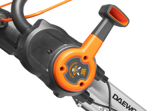 Удобный рычаг управления позволяет быстро изменять направление выброса снега на угол до 180°, не прерывая рабочий процесс и заметно ускоряя очистку территории.