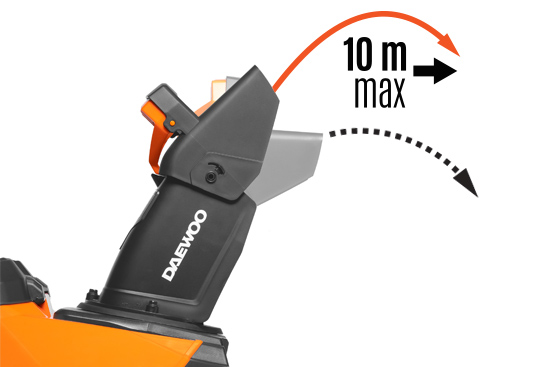 Дальность выброса снега легко регулируется в диапазоне от 1 до 10 м