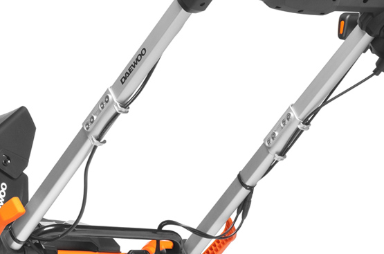 Современная конструкция и складная рукоятка позволяют компактно хранить снегоуборщик в вертикальном положении, значительно сокращая занимаемое пространство.