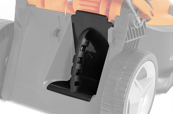 Складная конструкция позволяет экономить место во время хранения и транспортировки. Рукоятка за несколько секунд складывается вдоль корпуса газонокосилки.