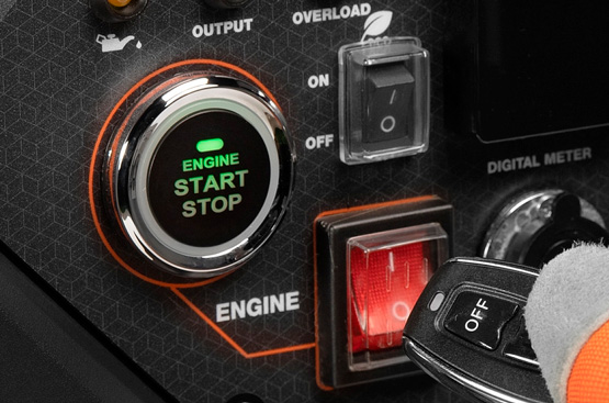 Генератор можно легко запустить одним нажатием кнопки. Воздушная заслонка закрывается и открывается автоматически.