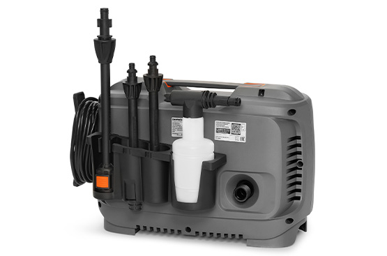 Для размещения аксессуаров на мойке предусмотрен съемный держатель с гнездами для пистолета и насадок.