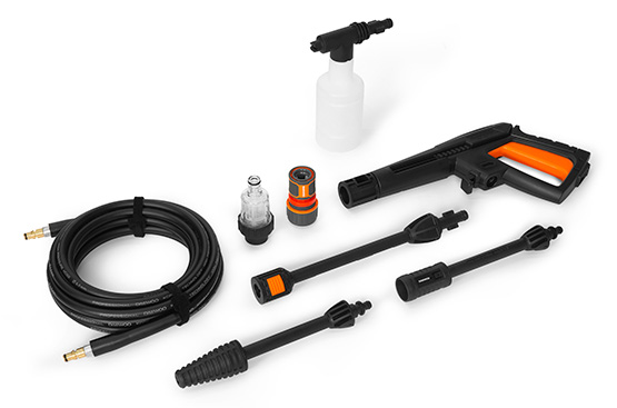 Помимо моющей насадки Home&Car Jet, в комплект поставки входит все необходимое: мягкий шланг высокого давления длиной 6м, грязевая фреза, пеногенератор, фильтр тонкой очистки, коннектор для садового шланга DWC 2500 с функцией аквастоп.