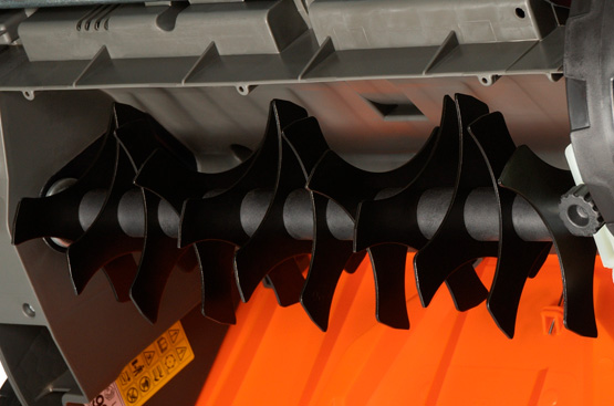 Травосборник, объемом 55 л,позволяет реже отвлекаться от работы. Выполнен из ткани и имеет жесткую основу. Благодаря этому он более вместительный, чем пластиковые травосборники, и его легко собирать и разбирать.