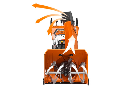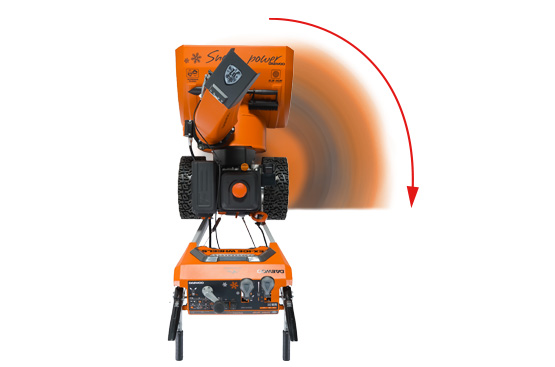 Изменение угла выброса на 180 градусов дает возможность мгновенно изменять направление и дальность выброса снега непосредственно с панели оператора.