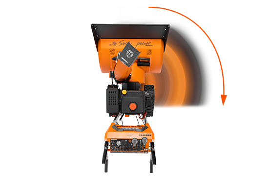 Изменение угла выброса на 180 градусов дает возможность мгновенно изменять направление и дальность выброса снега непосредственно с панели оператора.