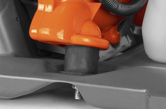 Двигатель воздуходувки установлен на специальных виброгасителях, помогающих снизить уровень шума и вибрации, что в свою очередь способствует улучшению комфорта работы оператора.