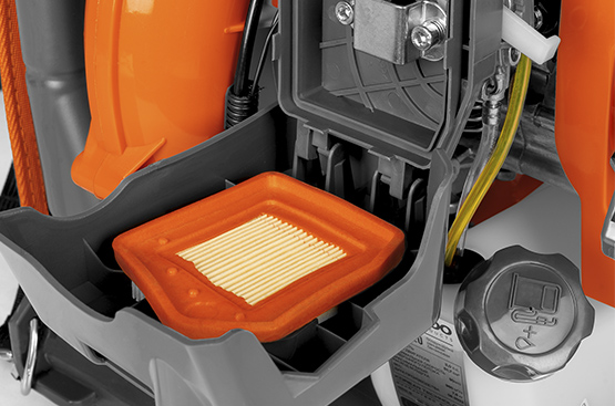 Обладает высокой эффективностью очистки воздуха. Воздуходувка оборудована системой быстрого доступа для обслуживания фильтра, что увеличивает ресурс двигателя.